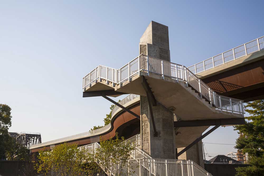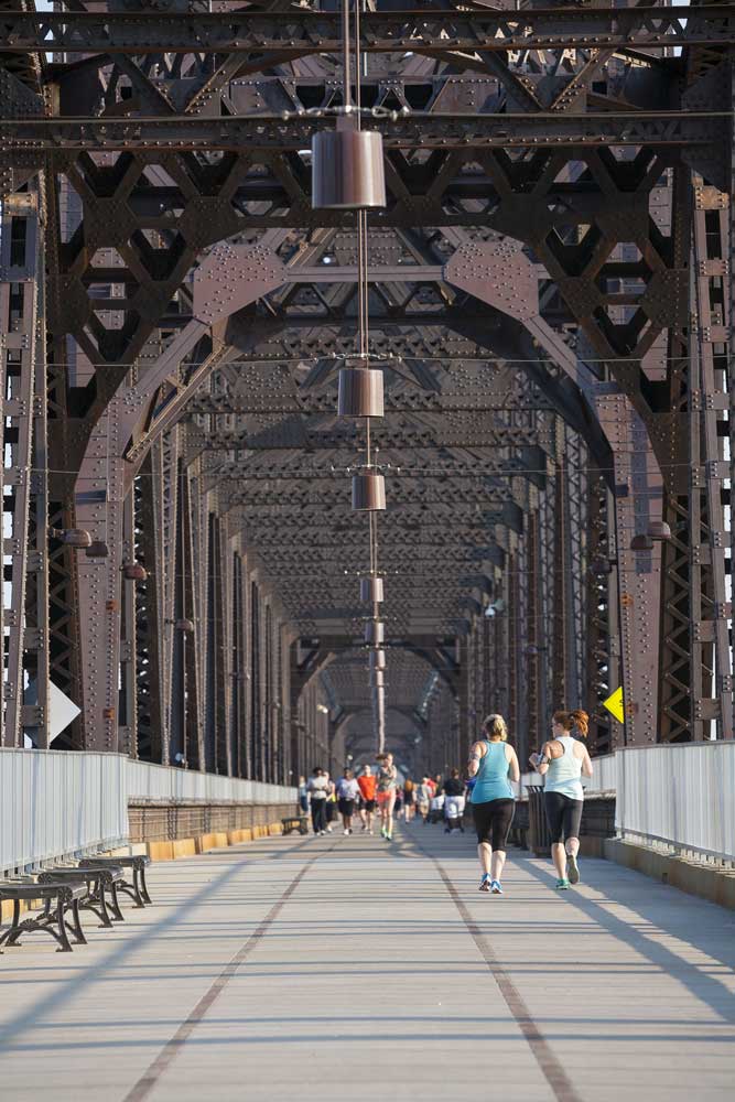 The Big Four Bridge spans the Ohio River and connects Louisville, Kentucky to Jeffersonville, Indiana for pedestrians and bicyclists. The ramp coming off of the Big Four Bridge into Historic Downtown Jeffersonville opened May 2014. The bridge was completed in 1895, and updated in 1929. It remained closed for years until re-opening for pedestrian and bicycle traffic in May 2014. The bridge takes its name from the defunct Cleveland, Cincinnati, Chicago and St. Louis Railway, which was nicknamed the Big Four Railroad