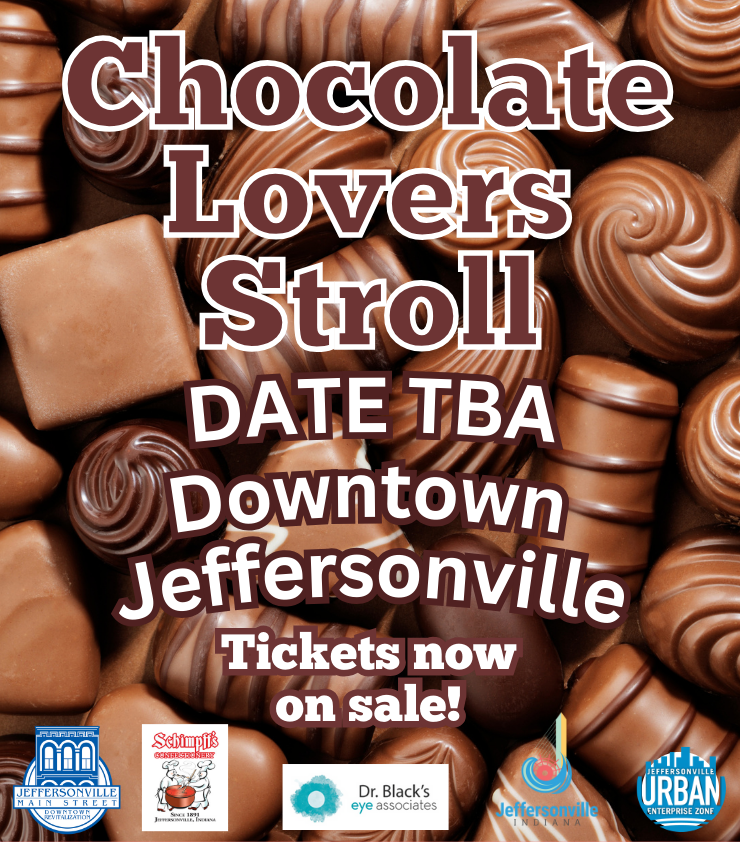 Jeffersonville Main Street presents The Chocolate Lovers Stroll — a fun event held in Historic Downtown Jeffersonville where you can taste yummy chocolates while you explore 12 Downtown Jeffersonville businesses.