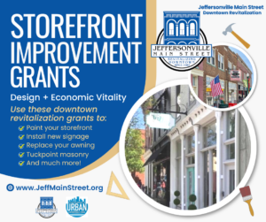Historic Preservation is Economic Development. The preservation of the commercial buildings in Downtown Jeffersonville is a critical component in assuring that the Downtown “Main Street” district remains vibrant and inviting to customers, visitors, and investors. The Storefront Improvement Program assists downtown business and property owners in making aesthetic improvements to their buildings, such as new signs, awnings, painting, etc. through matching grants. This program strengthens small businesses and promotes economic development in Downtown Jeffersonville; it’s made possible through a partnership with Jeffersonville Urban Enterprise Association and Jeffersonville Main Street, with support from Indiana Landmarks.